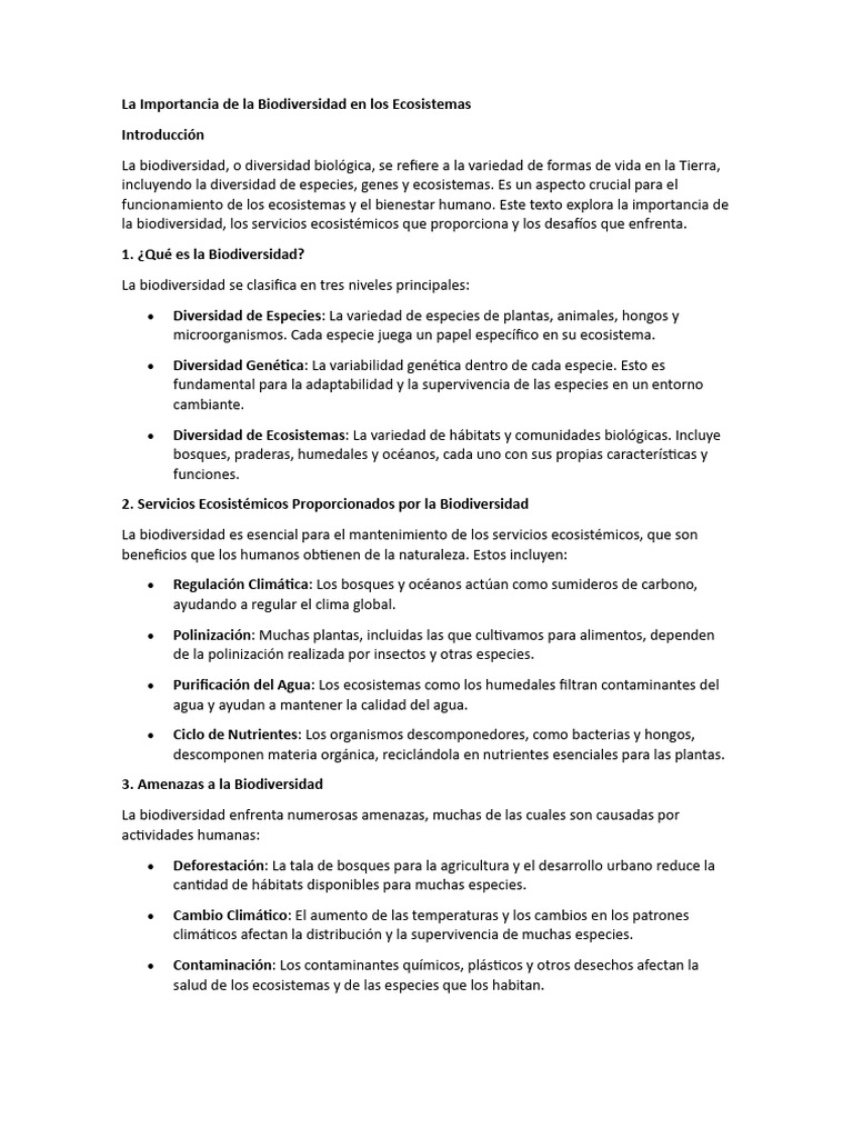 La Importancia de La Biodiversidad en Los Ecosistemas PDF