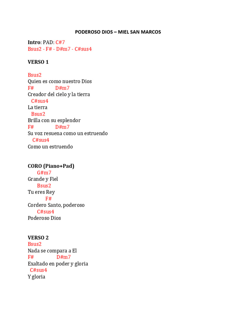Letra y acordes de guitarra. Aprende a tocar esta canción. Encuentra la letra y los acordes de la canción poderoso dios, interpretada por miel san marcos. Acordes de poderoso dios / yeshua, miel san marcos: Todas las cadenas son rotas / por su poder / todos los yugos quebrantados / a causa de la unción (x2) / nos ha dado.