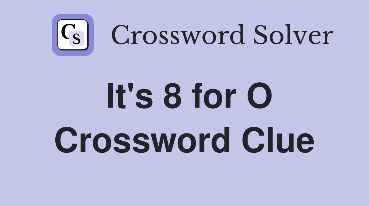 It's 8 for O Crossword Clue Answers Crossword Solver