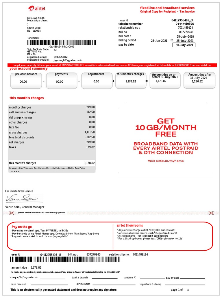 What If I Don T Pay Airtel Broadband Bill - They’ll terminate the connection themselves right? What will happen if i don’t pay my internet bill? What if you don’t pay the bill at all? Some of you are wondering what happens if we dont pay the bill. What legal action can be taken if i do not pay my airtel bill, answered by expert civil lawyer. Get free answers to all your legal queries from. Generally, if you disconnect before the billing cycle ends you can ask for a partial bill. Try reaching out to the customer care. When you do not pay a bill for monthly services such as water, gas, electric, internet, or telephone. Look, skipping bills might seem like a fun adventure initially, but it can lead to a path fraught with awkward phone calls, internet blackouts, and.