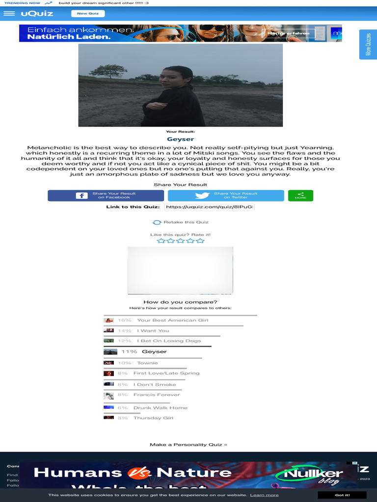 Which mitski song are you? Which mitski song truly represents you? Quiz introduction 98% accurate, 2% mean, but very inspiring. Take this fun quiz and find out! Make quizzes, send them viral.